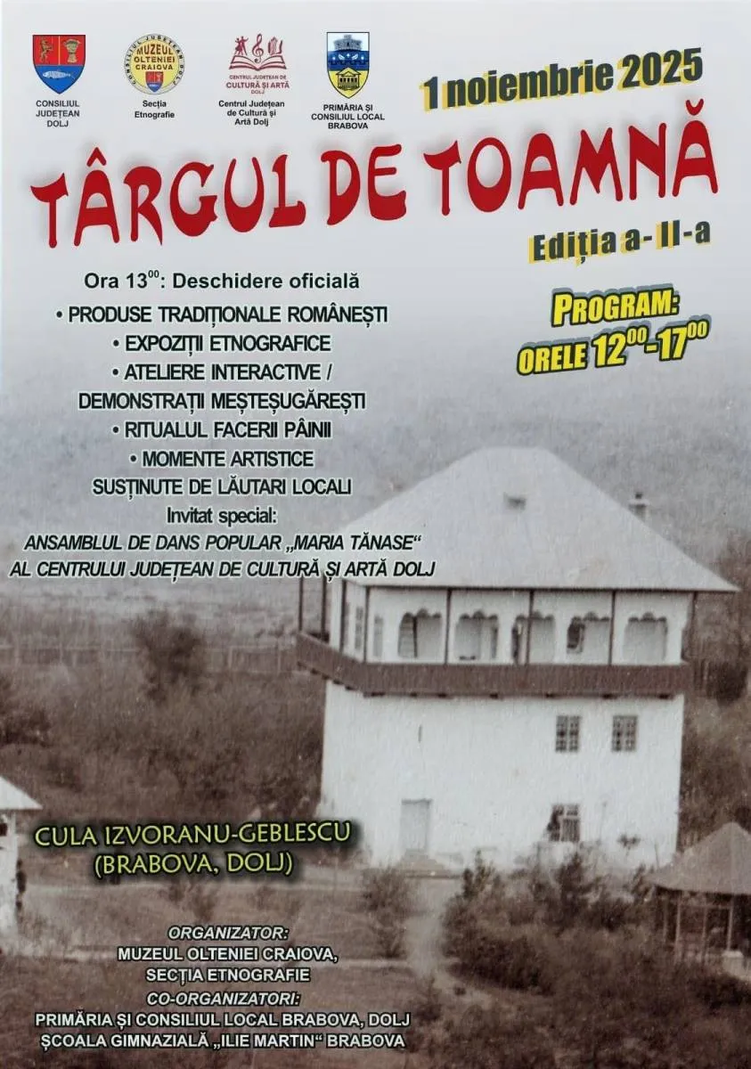 Organizată de Muzeul Olteniei Craiova, alături de CJ Dolj și alte instituții locale, manifestarea de la Brabova va evidenția esența și simplitatea vieții țăranului român. Vizitatorii pot admira tradițiile păstrate din vechime, într-un ambient care reamintește demnitatea satului de odinioară.